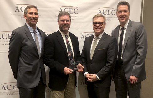 The Washington American Council of Engineering Companies (ACEC) has once again recognized GeoEngineers’ work during the chapter’s annual 2019 Engineering Excellence Awards. Three projects received awards Friday night at the award gala in Bellevue, Washington. This is the thirteenth consecutive year GeoEngineers has won awards from ACEC Washington.