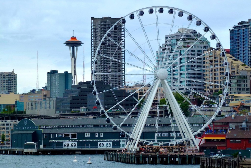 Today, the Seattle Great Wheel extends nearly 40 feet beyond the pier’s end over Elliott Bay. It can hold more than 300 passengers at a time in its 42 enclosed gondolas. And at 175 feet tall, the Seattle Great Wheel is the largest observation wheel on the West Coast.