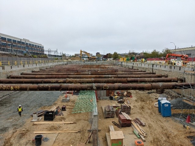GeoEngineers delivered comprehensive design calculations and detailed drawings for the project’s temporary support of excavation (SOE) system. The final design package included typical plans, cross sections, material specifications, and construction sequencing details for the braced slurry wall system. These deliverables provided clear guidance for the contractor, supporting safe and efficient excavation and construction of the project’s below grade structure.