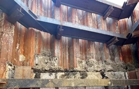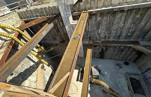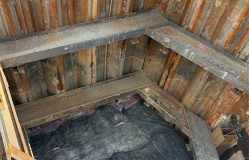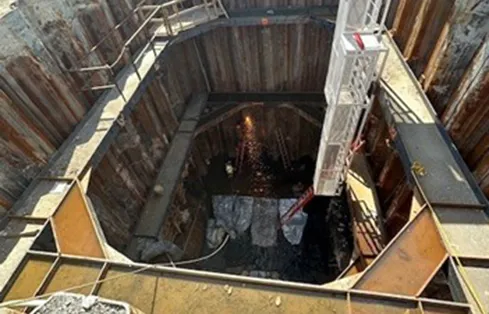 View of Shaft 2 – sheet piles with 2 levels of internal bracing (Courtesy of Keller North America).