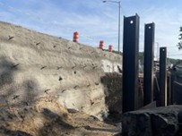 • Designed SOE at thirteen locations, including eleven retaining walls along the new I-95 alignment and two culvert endwalls, using slide rail systems for precast Doublewal units up to 12 feet tall and soil nails for a 25-foot wall.