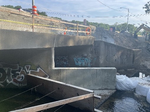 • Designed phased water handling systems at two culverts with stacked sandbag cofferdams to maintain flow during reconstruction.