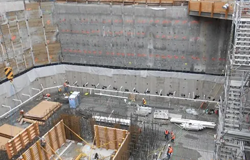 In 2011, Holland Construction began development of Premiere on Pine, a residential high-rise in downtown Seattle, Washington. The 440-foot tower boasts 40 floors of upscale apartments and is adjacent to the historic Paramount Theater on Pine Street. Holland hired GeoEngineers to provide geotechnical design and construction observation for excavation, shoring, and the building’s structural mat foundation.